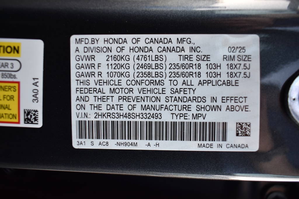 • Front tires: 235/60HR18.0
