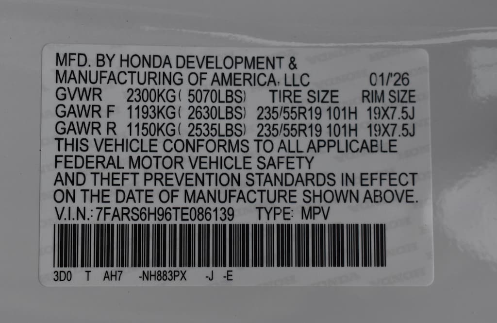 • Rear tires: 235/55HR19.0