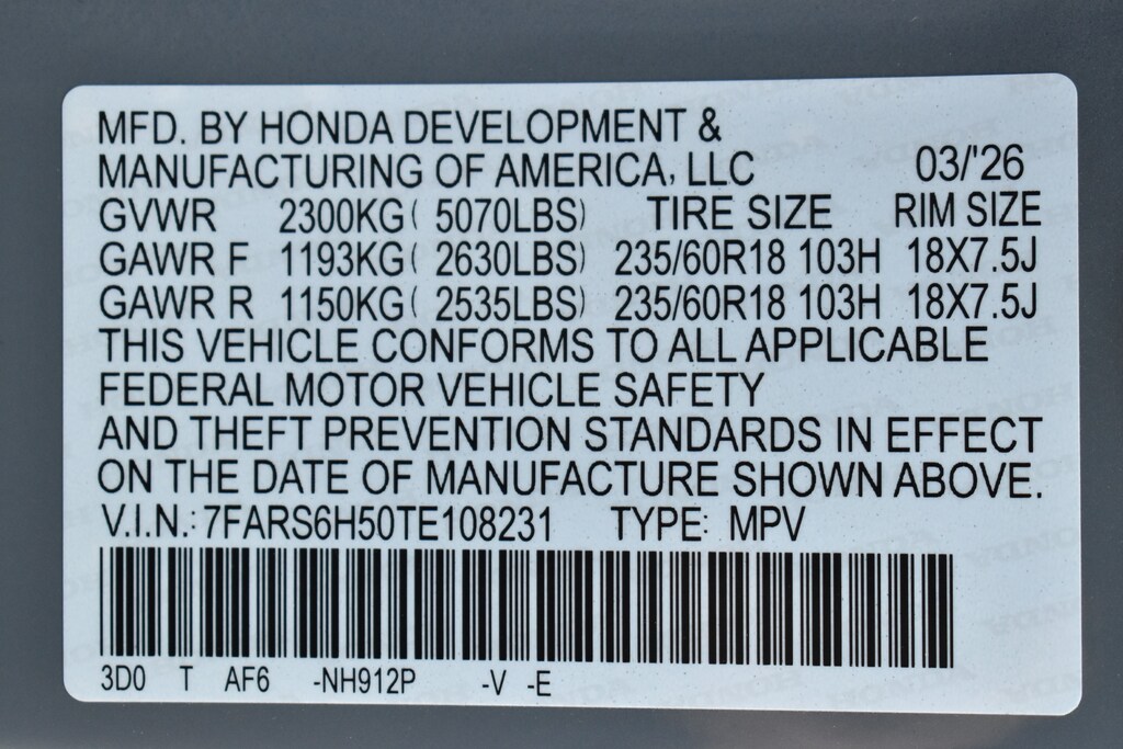 • Rear tires: 235/60HR18.0